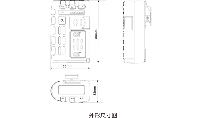 - 90分贝声报警,高亮报警灯及振动报警